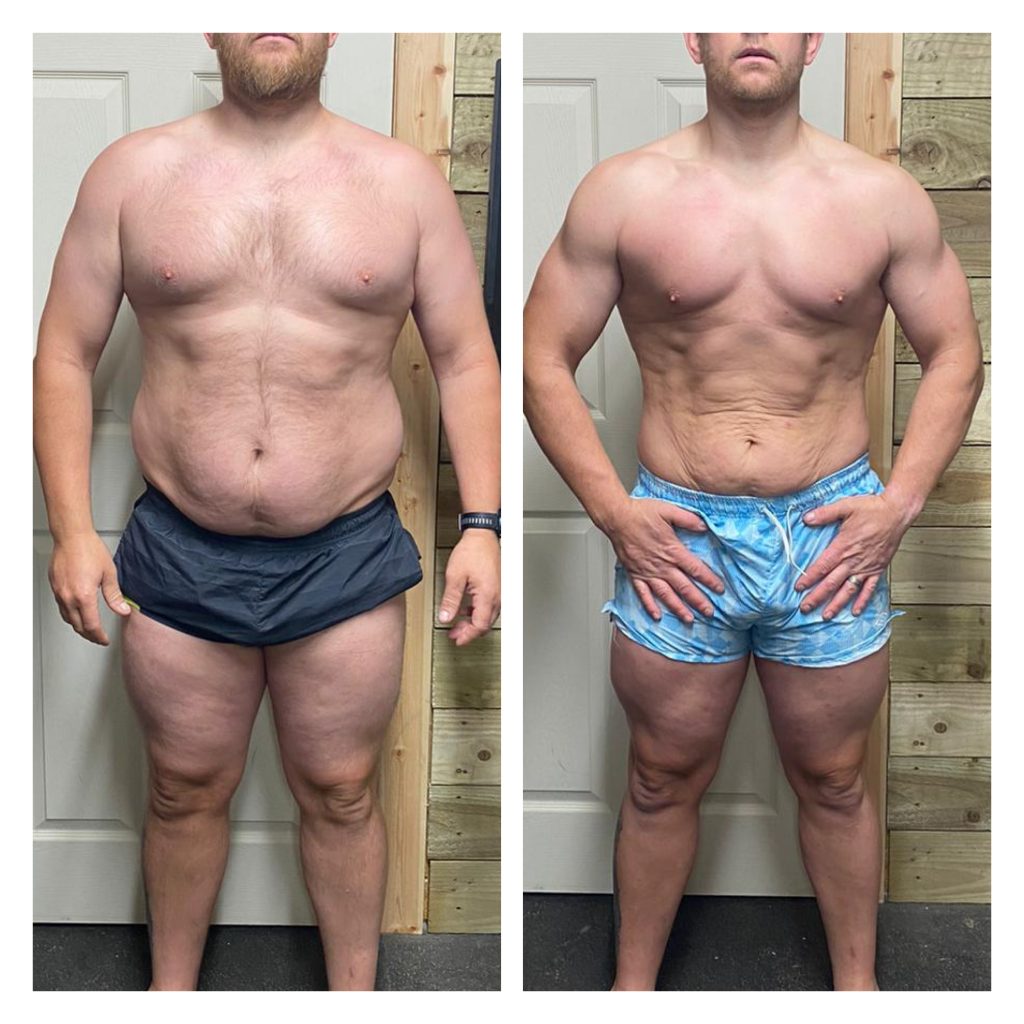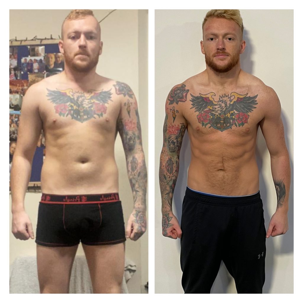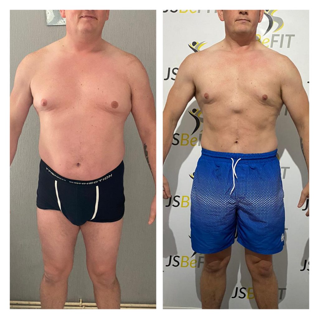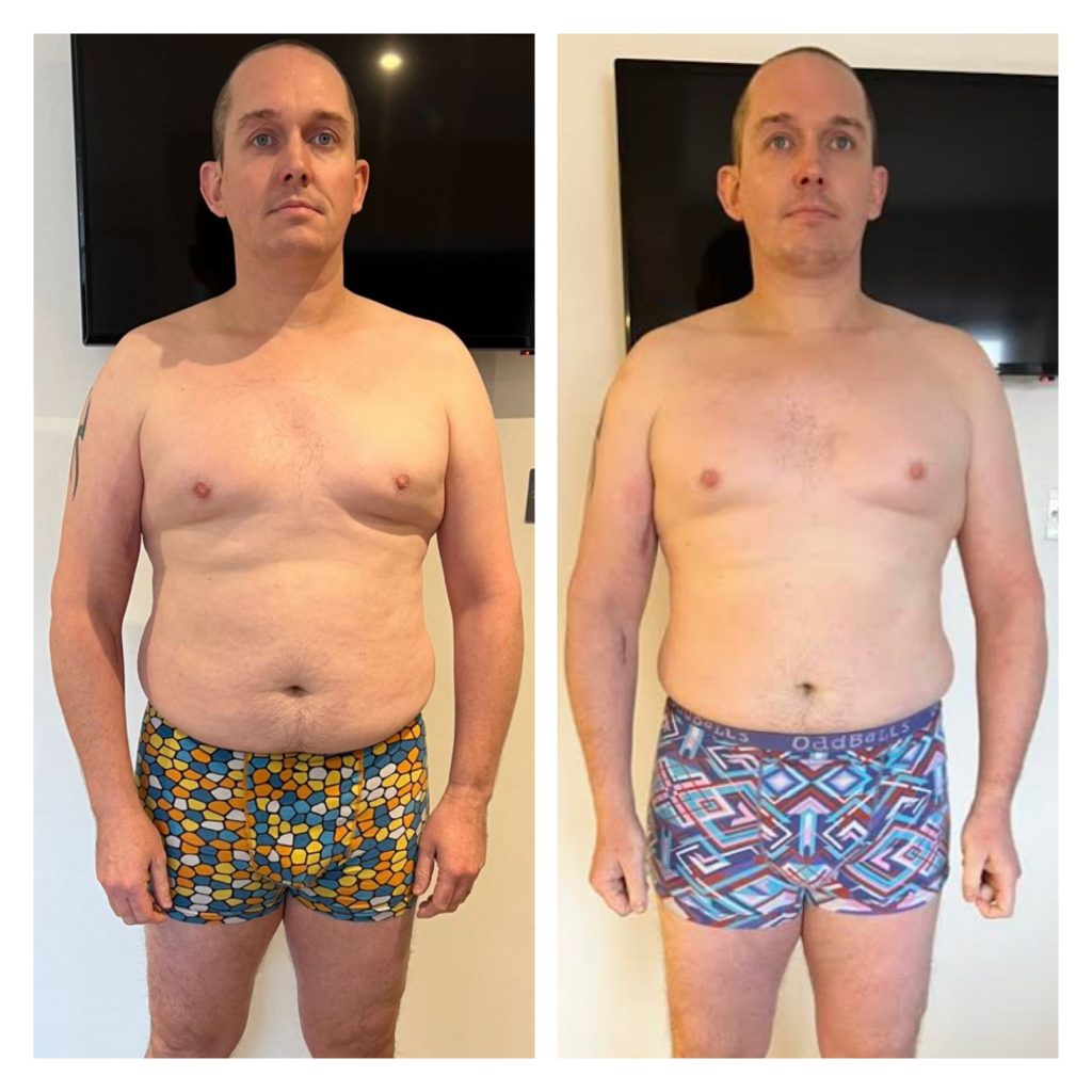 I started working with John online training after seeing before and after pictures of a friend, I was amazed but didn’t think he could do the same for me. It was lockdown, I was working away from home as a keyworker, no gym and living off comfort eating convenience foods. I didn’t think I had loads to loose, I wasn’t dead fat but knew I didn’t feel comfortable with myself. John talked me through the process and I was skeptical but willing to try.
